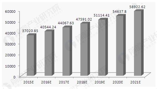 據統計,2015年,我國精細化工行業工業總產值約為37021億元,較2014年增長10%左右。按照當前發展勢頭,預計到2021年,行業工業總產值將達到5.9萬億元左右,可增長空間仍較大。